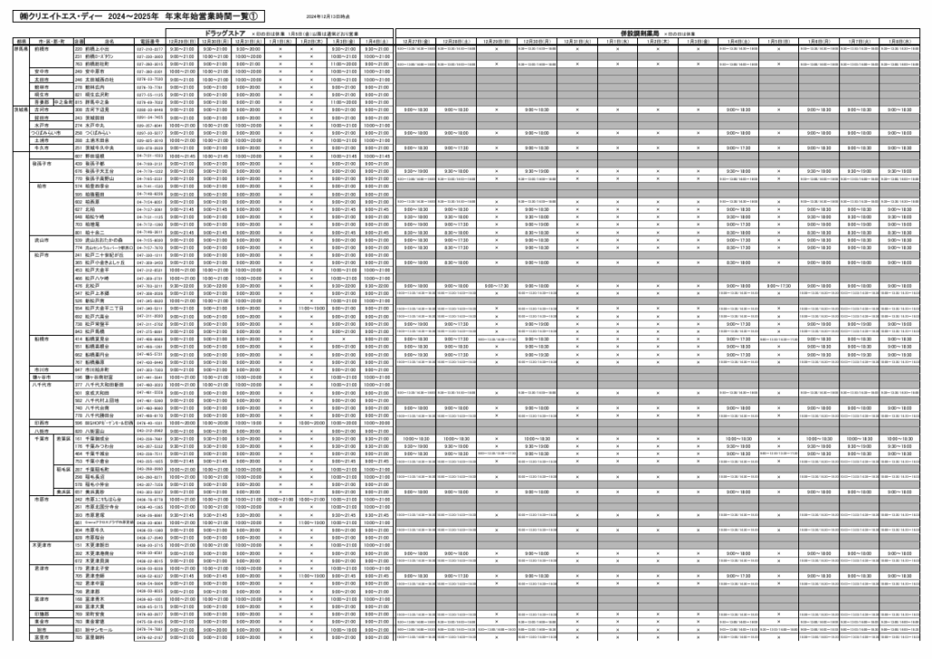 クリエイトの2024-2025年末年始の店舗別営業時間のPDFでの確認は、コチラ!